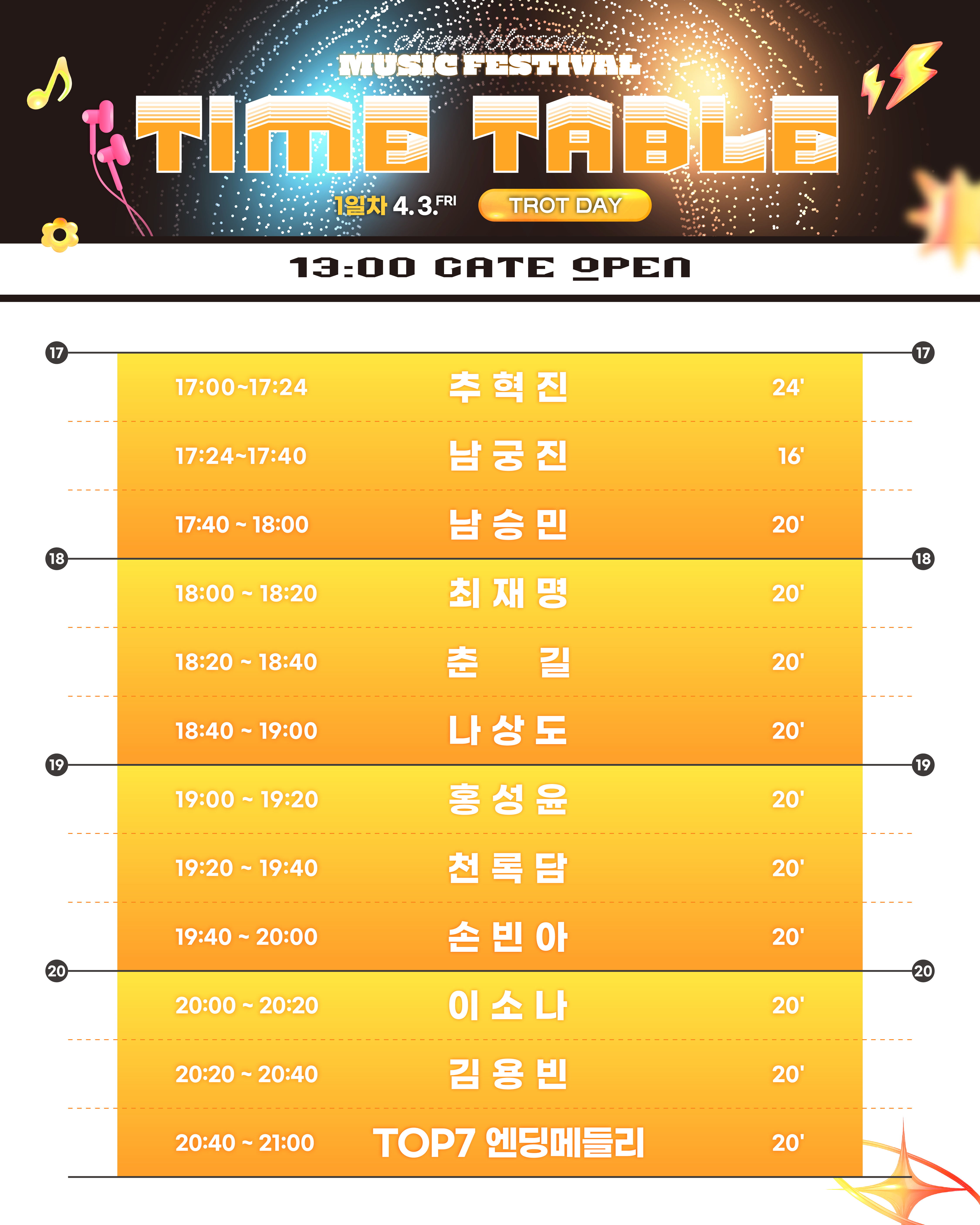 체리블라썸 뮤직페스티벌 TROT DAY 타임테이블