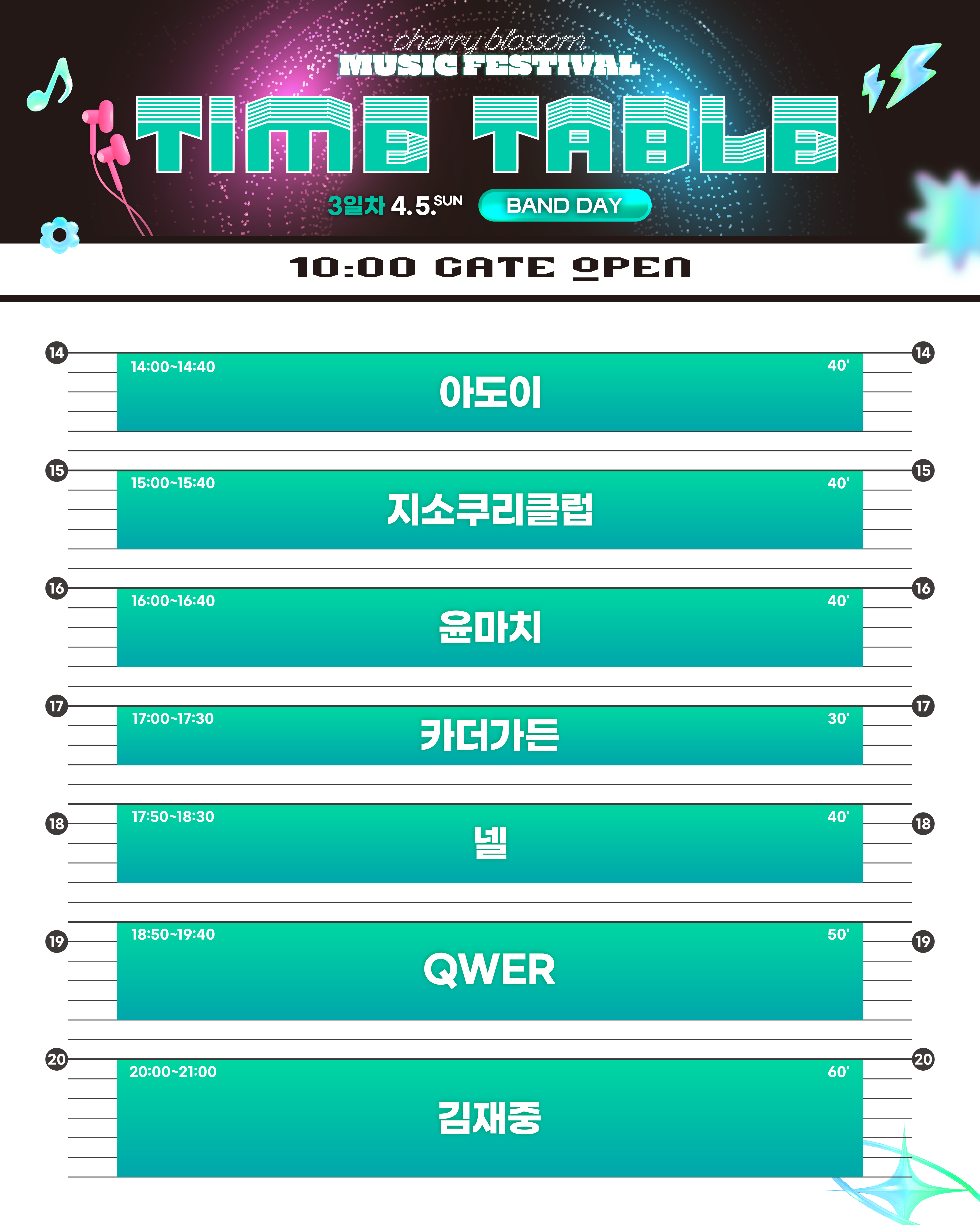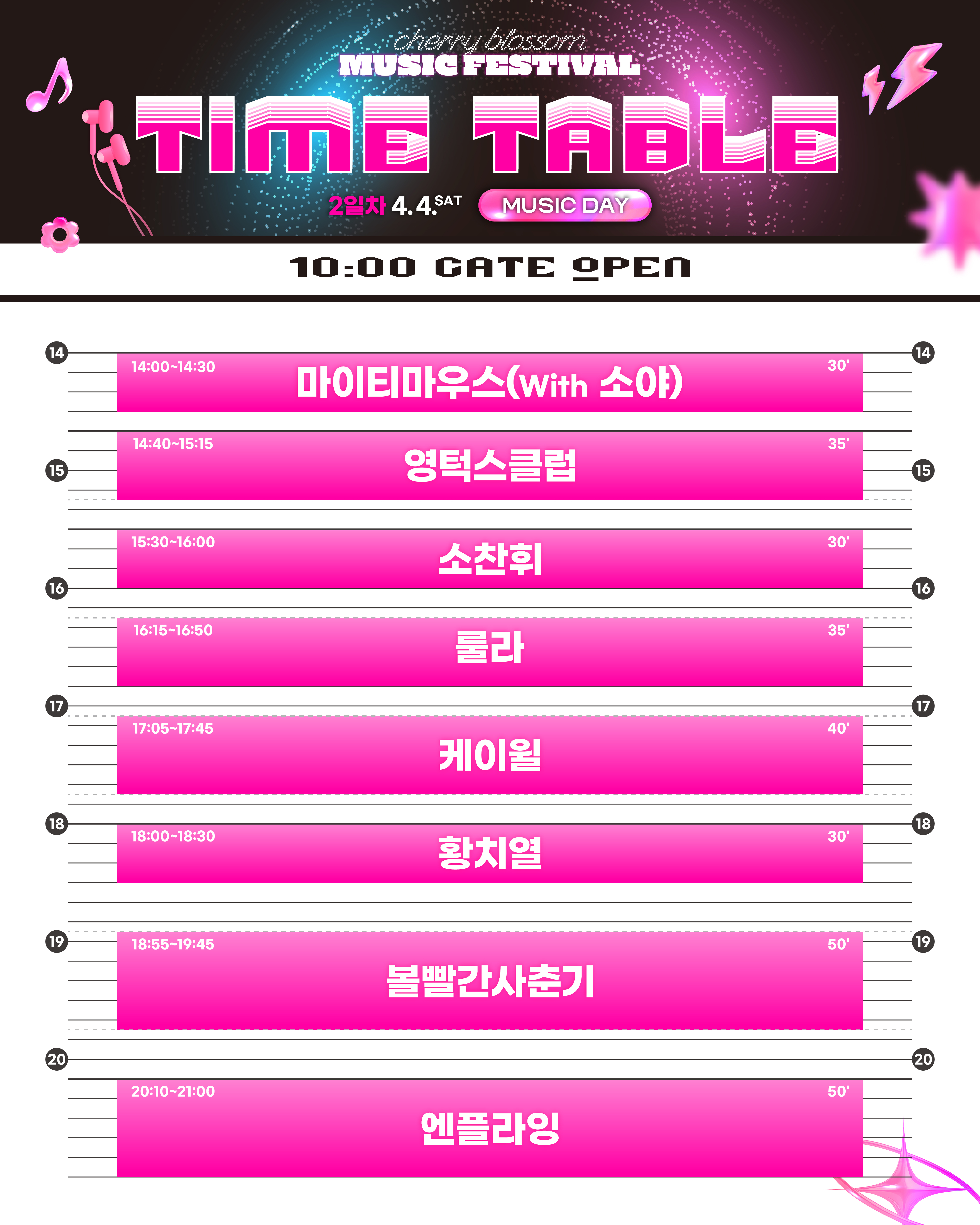 체리블라썸 뮤직페스티벌 MUSIC DAY 타임테이블